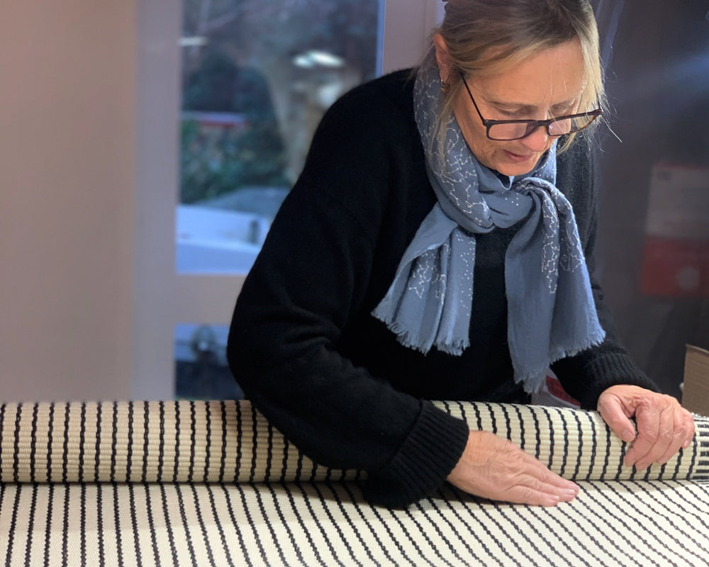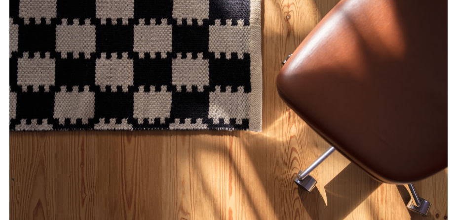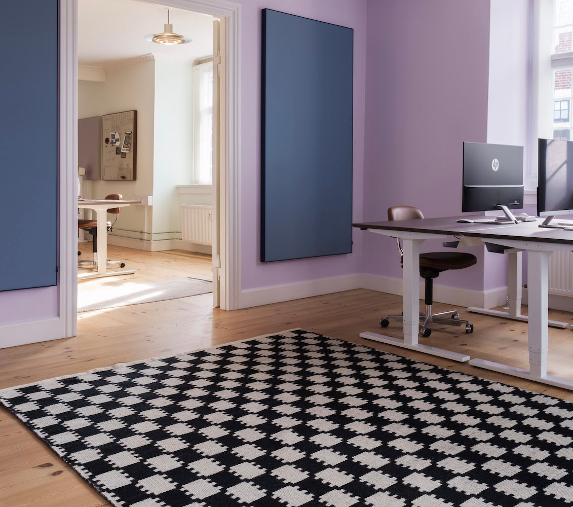 Create atmosphere, well-being and good acoustics at your workplace with NORDICMODERN's handwoven rugs designed by Vibeke Klint (1927-2019)