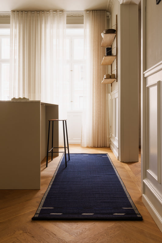 It creates coziness and adds warmth to an otherwise often clinical space. Additionally, it protects the floor in the defined walking area, which can quickly become worn out.