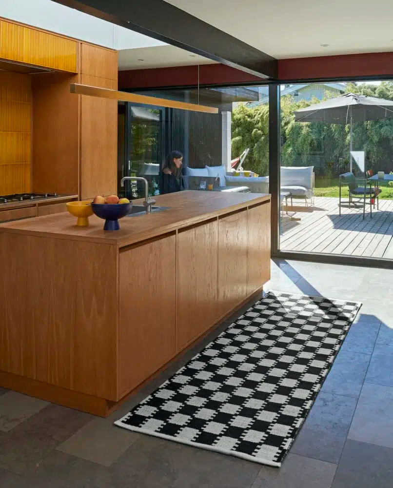The rug VK-5 was the very first rug that Vibeke Klint designed, and is characterized by the fact that Vibeke Klint was inspired by her teacher, Gerda Henning, whose workshop Vibeke Klint took over in 1951 after Gerda Henning’s untimely death at the request of the husband of Gerda Henning, the famous sculptor Gerhard Henning. The rug consists of small square pieces in white and black that are connected all over the surface, so that it appears elegant and lifelike, but most of all so timeless that it is now put into production for the next generation.