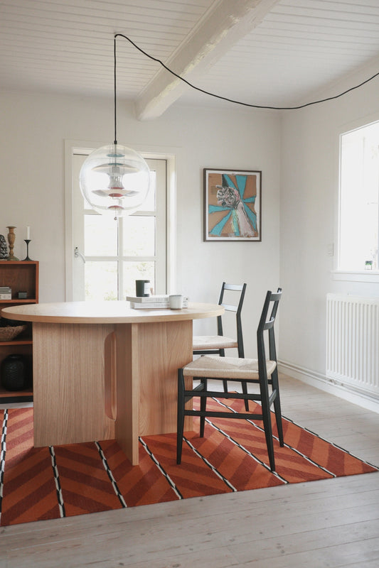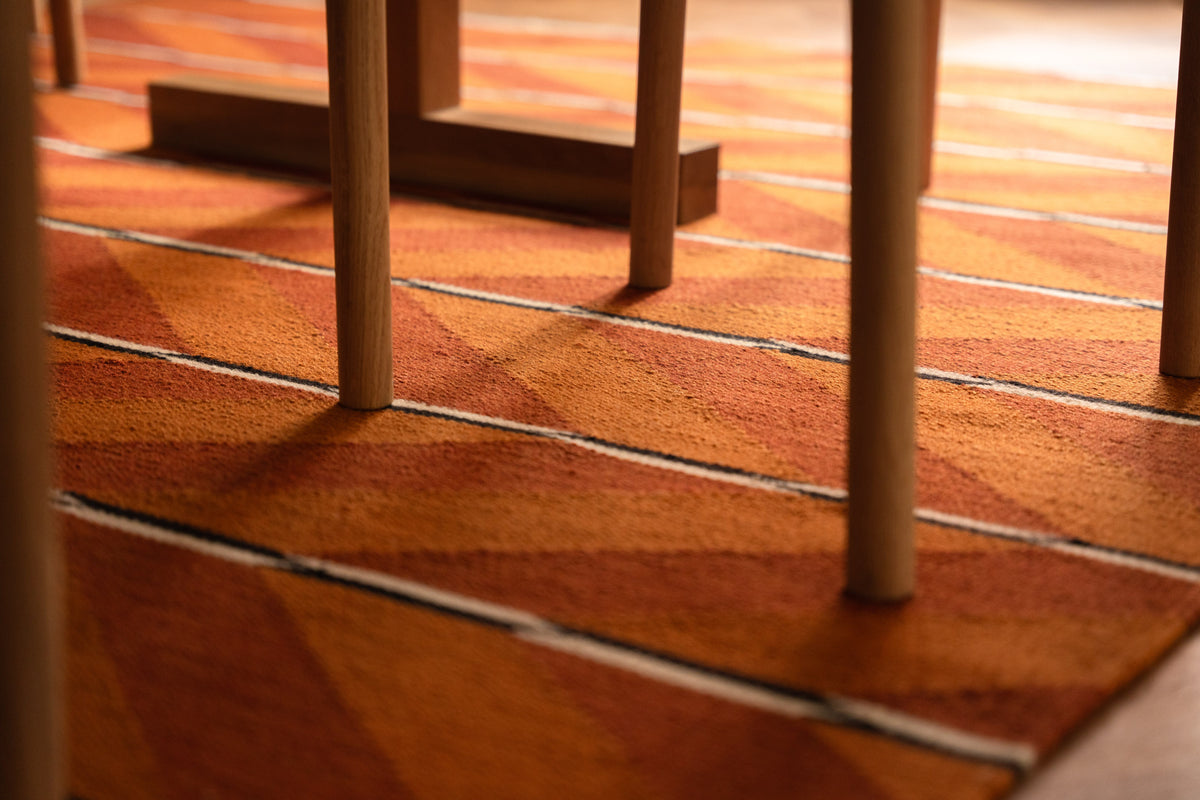 NORDICMODERNS kollektion af håndvævede tæpper er designet af Vibeke Klint (1927-2019) med udgangspunkt i hendes originale unika-tæpper, der aldrig tidligere har været i produktion.