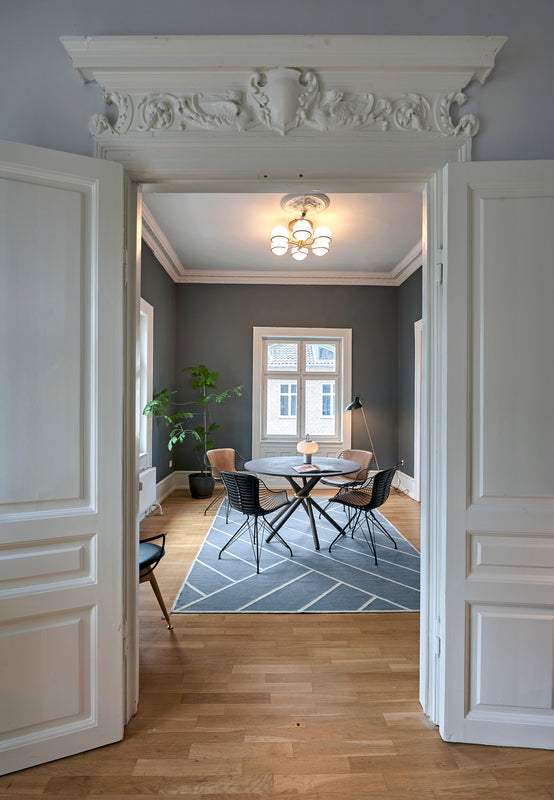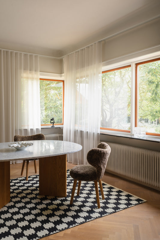 NORDICMODERNs kollektion af tidløse Vibeke Klint tæpper består af både neutrale og mere kunstneriske designs, hvor de forskellige mønstre og farver komplementerer hinanden. Tæpperne kan bruges i alle rum i boligen og skaber sanselighed og sammenhæng i indretningen.
